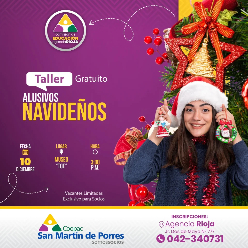 La agencia Rioja te invita a participar de nuestro taller de Alusivos Navideños🍲🫛Únete a nosotros para dar rienda suelta a