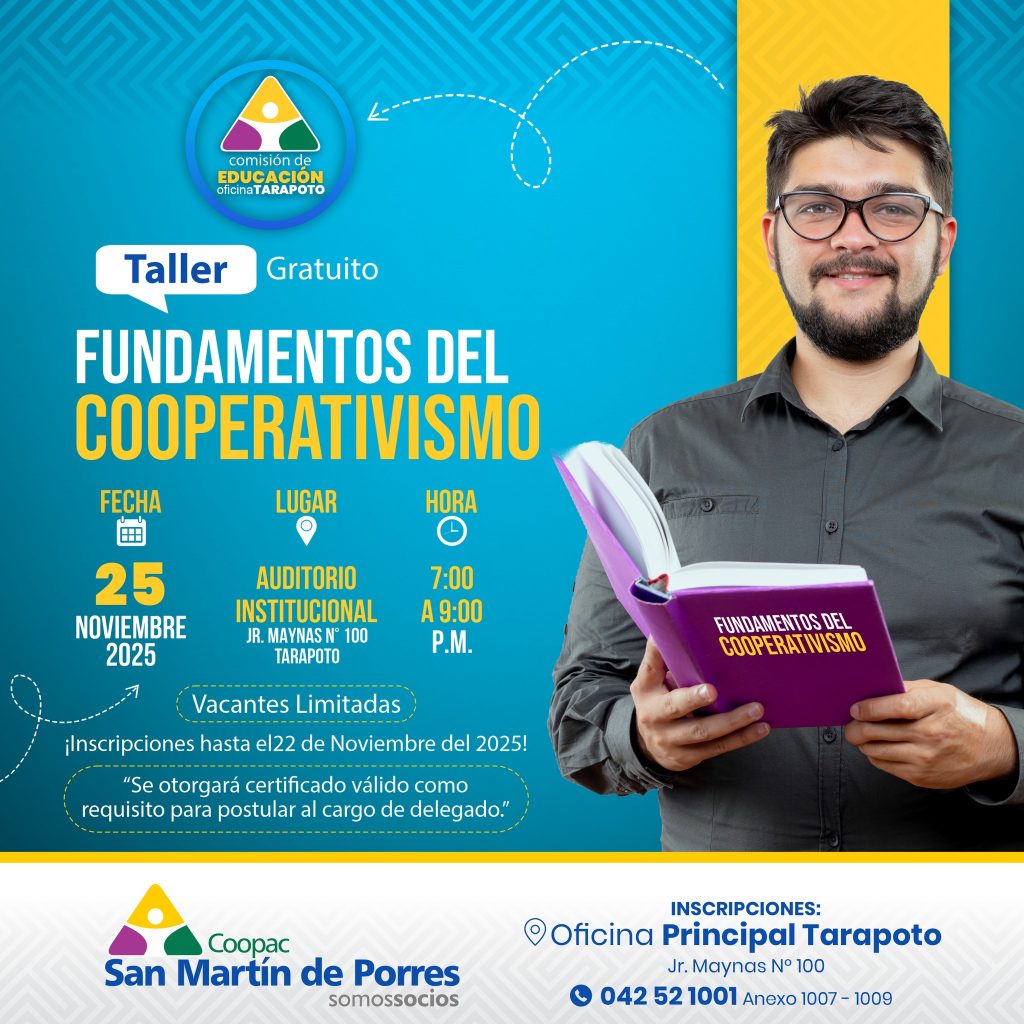 ¡Atención, socios de Tarapoto!Los invitamos a participar en esta capacitación diseñada especialmente para fortalecer sus conocimientos sobre el movimiento cooperativo