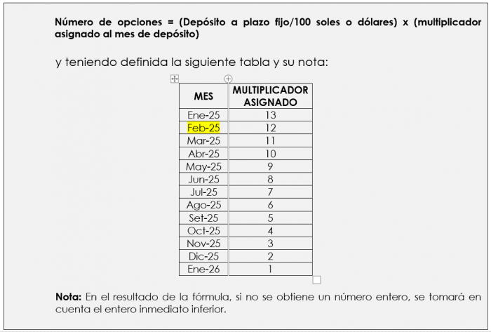 Consideraciones: Si el depósito no es cancelado con anticipación hasta el 18 de julio de 2025, el socio participará en el primer sorteo. Para conservar sus 633 opciones para el segundo sorteo, deberá renovar su depósito por un mínimo de 180 días hasta el 16 de enero de 2026.